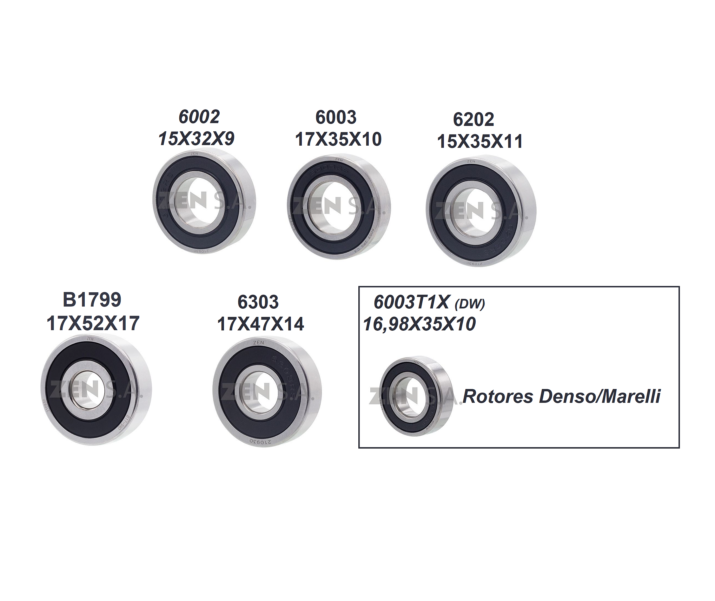 Kit c/ 6 Rolamentos Zen para Alternadores Diversos.